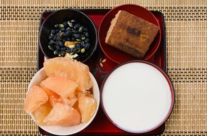 Day 1. 乳酸菌烤饢+酸奶+黑豆+核桃仁+紅蜜柚