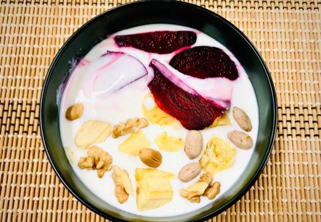 紅菜頭可以像水果一樣,直接作為大果粒加入酸奶中食用;也可以與酸奶一起打成酸奶昔/思慕昔,小編就很喜歡這樣吃,營養又方便;還可以做成紅菜酸奶。