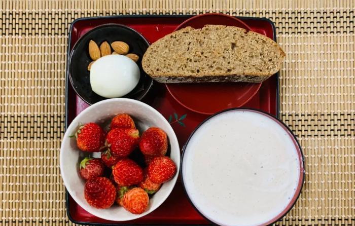 認真的朋友可能會發現,這些早餐有不少共同點,主要是必不可少的蛋白質食品(酸奶、酸豆奶、思慕昔、雞蛋、黑豆和乳酪),主食(乳酸菌列巴麵包、乳酸菌烤饢、乳酸菌蔥花餅、乳酸菌發糕、乳酸菌餅、全麥麵包和紫薯),果蔬類(橙子、紅蜜柚、草莓、芒果、蘋果和紅菜),堅果類(核桃仁、杏仁和花生)。蛋白質強化你的機體免疫力,碳水化合物為你的頭腦提供燃料,粗纖維讓你的腸道細菌享受高度多樣化生存條件。提示:酸奶只有自己做才最好,我不會買任何新增劑(包括糖),想要有些甜味不妨加一點紅甜菜,功能顏色和口感都爆表。除酸奶之外還可以用自制發酵的雜糧粥或五穀豆漿取代,但同時可減少主食攝入,增加蛋白質攝入。小編所用酸奶全部都是自制NS8酸奶。