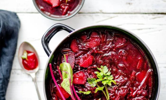紅菜頭可以加其他素菜或肉菜燉湯食用,比如經典的紅菜湯和罐燜羊肉/牛肉就少不了紅菜頭的增色提味。