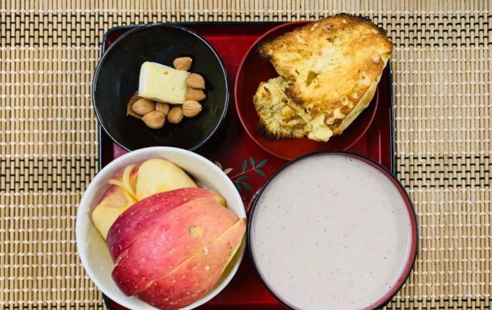 Day 7. 烤乳酸菌發糕+酸豆奶+乳酪+小杏仁+蘋果